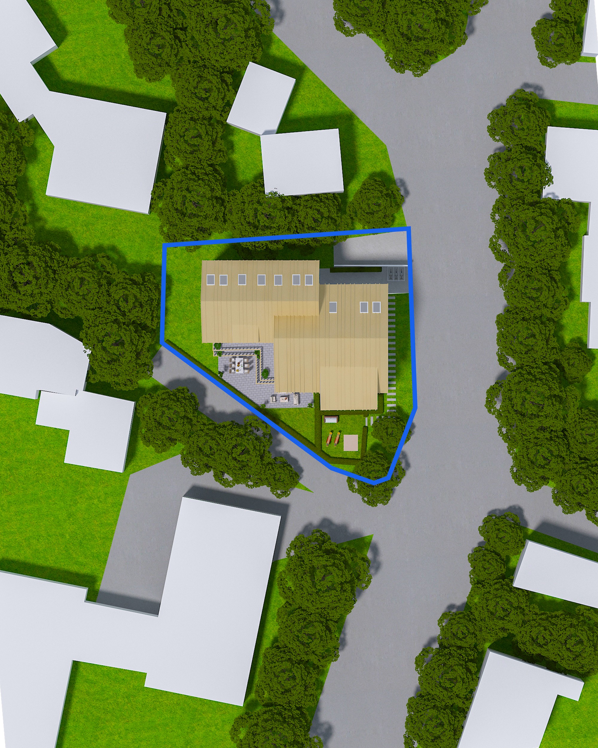 * Freistehendes Mehrfamilienhaus mit klarer, moderner Architektursprache