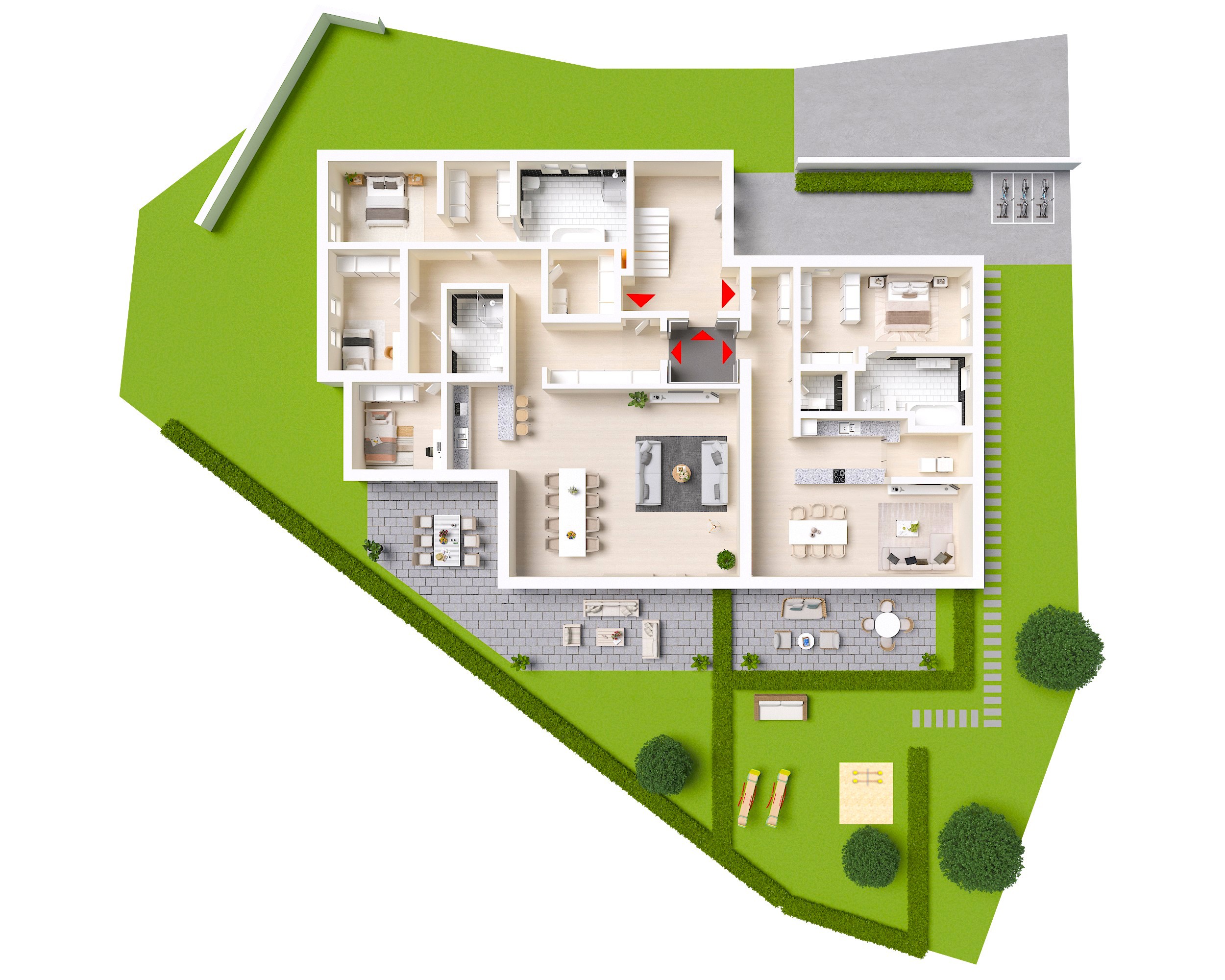 * Außergewöhnlich hoher Wohnwert durch großzügige Außenflächen