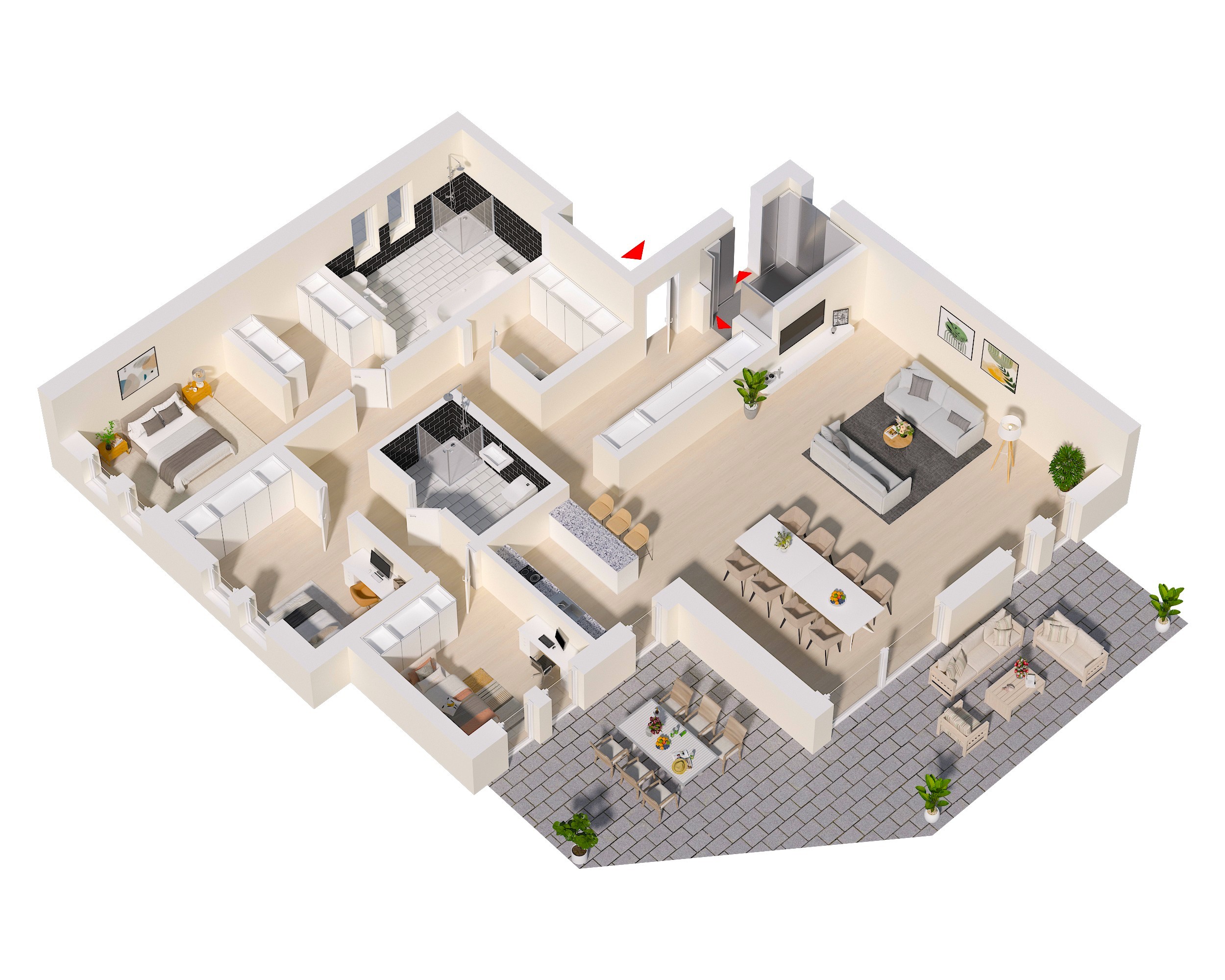 * Weitläufige Außenflächen im Penthouse